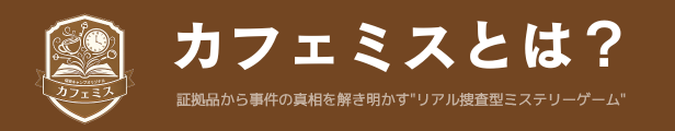 カフェミスとは、証拠品を実際に手に取り、調査と発見を重ねながら推理を進めていく"リアル捜査型ミステリーゲーム"です。